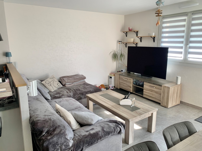 Le logement se compose d’une entrée avec rangement, deux chambres, une salle de bains avec espace buanderie, un WC séparé, une cuisine équipée avec espace bar ouverte sur un salon lumineux avec accès sur une terrasse. Le chauffage est collectif au fioul avec compteur individuel.